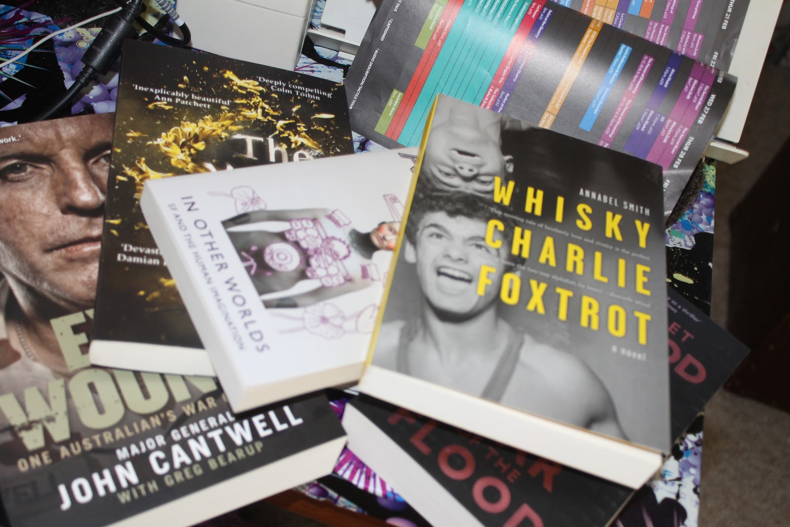 In the end I came away with five new book purchases, which wasn't too bad given that I had vowed not to buy any more until I had finished reading the ones that I already have. Ah well, it's a long drought until the next festival, and sometimes books are hard to track down. Not the ones I bought probably, but in theory. I didn't get everything I wanted though. I'm looking to purchase China Mieville's (still can't do the accent) Embassytown. What I did come away with was Whisky Charlie Foxtrot a novel by Annabel Smith (Fremantle Press) about identical twin brothers who are estranged until a freak accident... looks good. I started reading it in the bookshop and I'm hooked already. No prizes for guessing the next ones: The Year of the Flood by Margaret Atwood, and In Other Worlds - SF and the Human Imagination. Yes, I know she doesn't need the book sales, but there you have it.