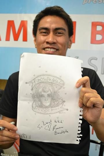 Pumunta kami kahapon sa Bakit hindi ka crush ng crush Mo? book signing. Dinrawing ko si Sir Ramon, dahil sobrang noob ko magdrawing medyo naging kamukha ni Obama. Hahaha nakakahiya, pero buti nagustuhan niya. AT NAKITA KO SI RA RIVERA HIHIIHIH SHET KRAS KO UN E :”> HAHAHAHA HIIHIIHIHIH SHSHHHTTT