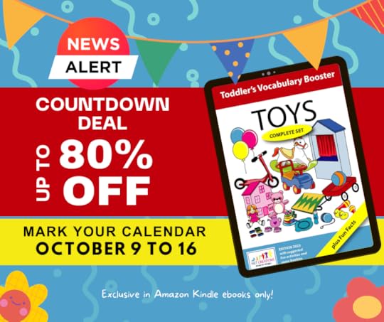 Don’t forget to mark your calendar for October 9 to October 16, 2023, and be prepared to embark on a journey of imagination and learning with the ‘Toys’ eBook from ‘Toddler’s Vocabulary Booster.’ It’s a delightful learning experience you and your child won’t want to miss!
