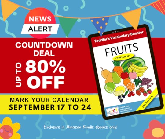 To take advantage of this fantastic Kindle Countdown deal, simply visit our eBook page on Amazon between September 17 and 24, 2023. You’ll find the eBook “Fruits” from the “Toddler’s Vocabulary Booster” series available at a significantly reduced price during this limited-time offer. Don’t miss out on this chance to provide your toddler with a valuable learning resource at an unbeatable price.