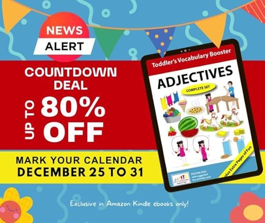 The magic of language unfolds in delightful ways, especially when we embark on learning with our little ones. We’re excited to share a special treat this festive season — our eBook, “Adjectives” from the ‘Toddler’s Vocabulary Booster’ series, is having a Kindle Countdown Deal starting December 25 to 31, 2023!