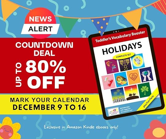 The holiday season is upon us, and what better way to celebrate than by giving the gift of knowledge to the little ones in your life? I’m thrilled to share some exciting news with you—my e-book, “Holidays – Complete Set,” part of the ‘Toddler’s Vocabulary Booster’ series, is set to light up the Kindle store with a special Kindle Countdown Deal!