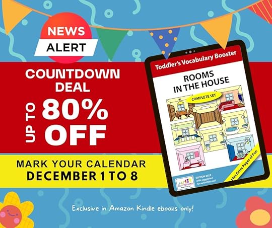Visit the Kindle Store on Amazon from December 1 to 8, 2023.Look for “Rooms in the House – Complete Set” in the Toddler’s Vocabulary Booster series.Enjoy the Kindle Countdown Deal with a significant price reduction.Or simply click the button below.Join the Learning Adventure: