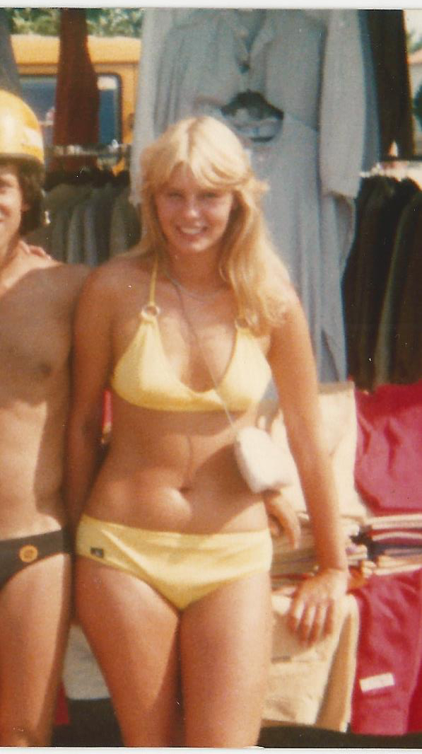 Bev in 1979 at Argeles-sur-mer in her dream goddess bikini (worn later for her job 'interview' at Playboy...yes, I know, please don't judge me!)Carol and Bev met at Keele University in the north of England in October 1977. They had no idea that they would be firm friends for the duration of their courses and beyond. In fact, no-one could have foreseen such a pairing.