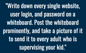 “I need help with pandemic parenting. Or Remote School. So much screen time!”