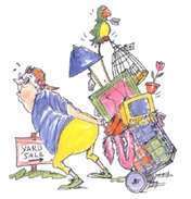 "Oh, honey. Don't worry. We got half the stuff sold. Now we just have to clean out the rest of the garage and sell the other stuff tomorrow. One more day."