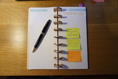 As I was going over my project list, I realized that two of my projects are very broad, and I think now I'll narrow them down. Like maybe "read chapter one of a marketing book" vs "read marketing book." Otherwise, I'll never get those post-its pulled off the to-do page and inked in as done. And narrowing down is good because it shows I'm focusing more on my projects and making them achievable.