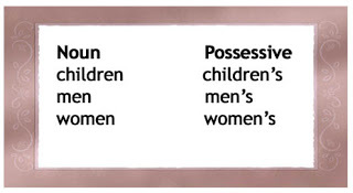 On to the second part of the plural noun rule. The possessive of a plural noun that does not end in s is formed by adding an apostrophe and an s.