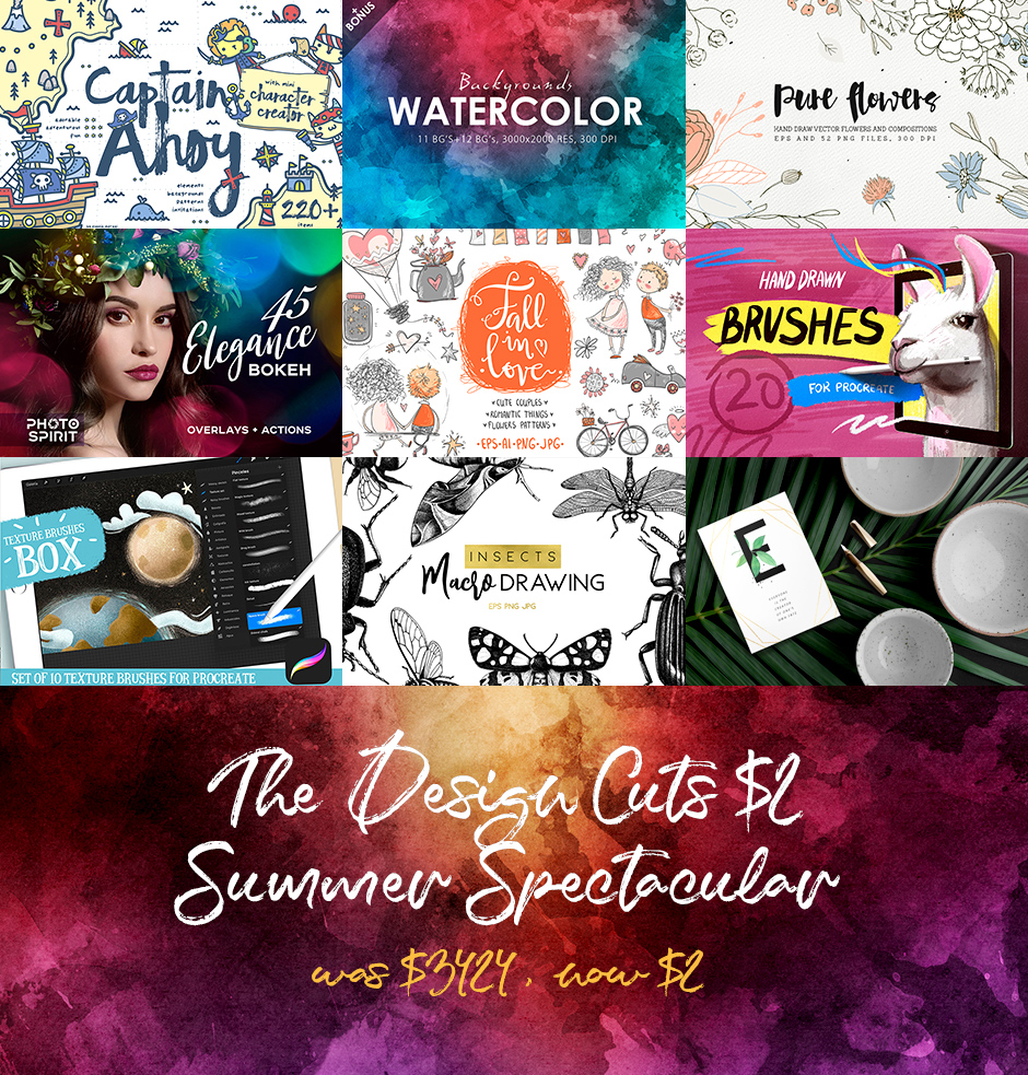 Celebrate A Spectacular Summer With Our $2 BundleThis summer has been a scorcher so far with some of the hottest weather ever recorded in the UK. With temperatures rising, the Design Cuts team wanted to share some of the coolest design resources around with you! This is our massive thank you to you, our community for being so amazing this year!We have worked with some of our incredibly talented design partners to bring you this collection of wonderful fonts, backgrounds, illustrations and so much more! Our incredibly talented design partners have kindly offered these popular products as their gift to the Design Cuts community. The $2 bundle price helps us to cover the cost of hosting this bundle. These resources will have you creating for seasons to come and all at 99% off the original price!
