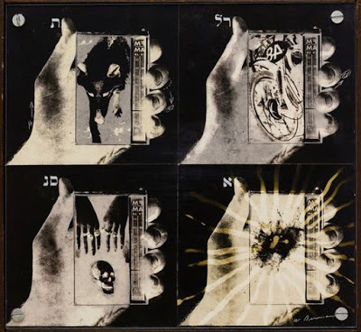 My dad, Wallace Berman, first and the very last gallery show he did while alive. This exhibition was shut down by the LAPD in 1057. -Tosh Berman