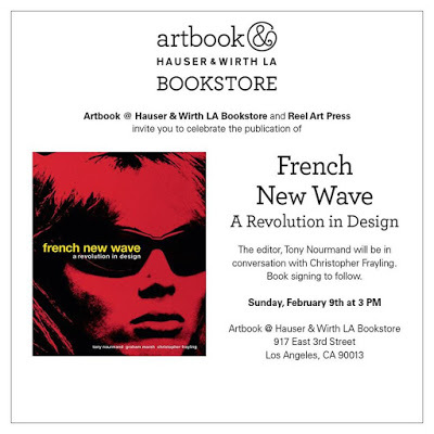 French New Wave: A Revolution in Design" Edited by Tony Nourmand. Introduction by Christopher Frayling. Design by Graham Marsh. Text by Alison Elangasinghe.The French New Wave, of course, has a presence as cinema, but also, and equally important is how the international graphic arts contributed to these markable films. I believe most of us who were touched by the French New Wave was first seduced to its greatness by its movie posters. In an obsessive (and love is always obsessive) manner, we look at the graphic genius of Jean-Michel Folon, Boris Grinsson, Waldemar Swierzy, Christian Broutin, Tomasz Ruminski, Hans Hillman, Georges Allard, René Ferracci, Bruno Rehak, Zdenek Ziegler, Miroslav Vystrcil, Peter Strausfeld, Maciej Hibner, Andrzej Krajewski, Maciej Zbikowski, Josef Vylet’al, Sandro Simeoni, Averardo Ciriello, Marcello Colizzi and many more. From France to the U.S. to Poland, Japan, and elsewhere, The French New Wave was a foundation where graphic art was made and equally as important as the actual films.The editor Tony Nourmand will be in conversation with Christopher Frayling. A book signing will follow. At Artbook @ Hauser & Wirth Los Angeles, 917 East 3rd Street. Sunday, February 9th at 3PM. - Tosh Berman