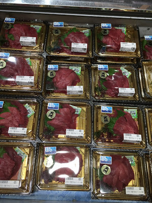 Exhausted, I went to a local market near my home here in Meguro and found an overabundance of raw tuna. I had rice at home and decided to buy a package of tuna, and at home, I'll make sushi rice, which is a combination of white rice, vinegar, and sesame seeds. I actually like the sushi rice better than the fish that is either mixed in or lays on top of the tuna. If one gives me a bowl of rice, I would be happy and content.