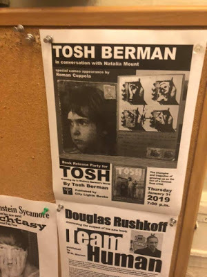 TOSH BERMAN DISCUSSES HIS MEMOIR "TOSH" WITH JASON SCHWARTZMAN at the fantastic, wonderful, and one of my second-homes, Skylight Books in my (I do own) Los Angeles. Bookstores mean a lot to me. I like going to the store, and hanging out, and just noticing not only the books on the shelves but also the people who come in and out like a wave hitting a beach. Like being in a record store, I never ever had a bad time in a bookstore. Skylight Books is (sort of ) walkable from my headquarters, and a delight in every visit. Also, they have a killer Graphic Comic section. Do support your local book store. For one, you can preorder my book, signed, and they will even mail it to you, wherever you leave your hat (or wig). For those who will go, here's the info: