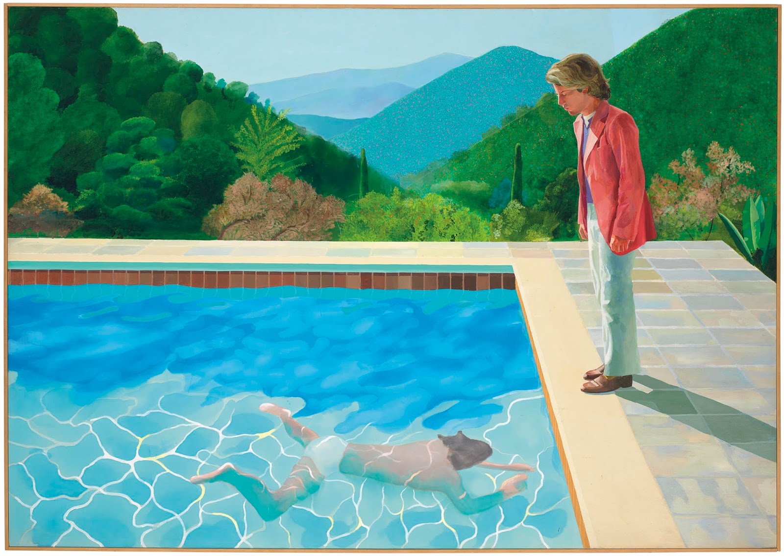 The other painting that caught my eye is a work by David Hockney. "Portrait of an Artist (Pool with Two Figures)." I prefer if the painting is called "Pool with Two Figures." I don't think we need the word artist in the title. Since it's a painting by an artist, why put a focus on artist again. It's a colorful painting of a young man, who's dressed nicely looking at another young man in a swimming pool. At first, I thought the man in the pool drowned, and we're just looking at a floating body. But I think the artist would have called the painting "Pool with a Dead figure and Young Man" or something of that order. Still, I love the mountain range in the picture, and the composition is excellent. Plainly worth the $100, but then Mr. Gagosian told me that this print would be $150. To my surprise, he wouldn't go down from that price. I then immediately walked out of the store, thinking he would stop me. I turned around the corner and again, to my surprise, he didn't run after me. I then walked back into his shop, and he knew I would pay the full price of $150.