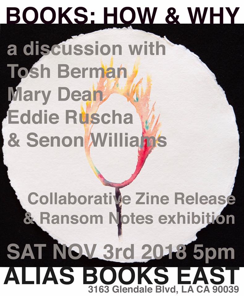 BOOKS: How & Why with Tosh Berman, Mary Dean, Eddie Ruscha & Senon Williams. Nov. 3rd