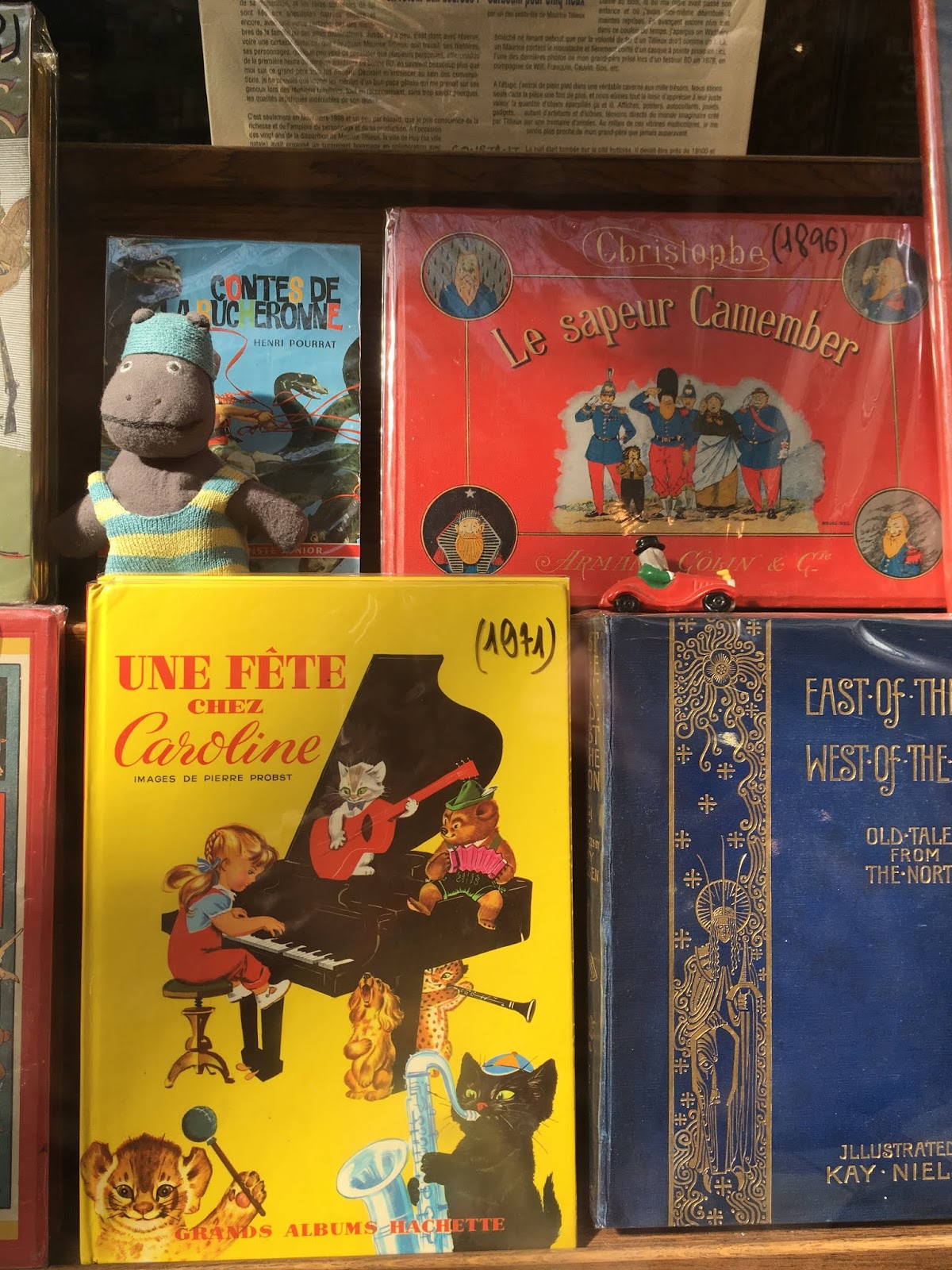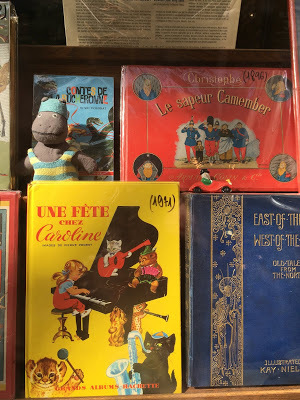One of the stores I admire greatly is Au Petit Bonheur la Chance (13 rue Saint-Paul 75004) which is an antique store, but focusing on 20th-century pop culture items and objects from one's youth. This perfectly named store is jam-packed with sewing material, notebooks from another era/generation, and most movingly a whole section of photographs taken of family trips and get-togethers. Why these photos are not in some family's collection is a tad depressing, but also has an emotional charge when you look through these images. I found a box of 7" 45 rpm singles that included a Jacques Dutronc record, but alas, I have the same copy at home. So its a shop full of French toys from the 1950s, old fabric, napkins, statuettes, old playing cards, games, and old retail signs plus postcards from another time and era. The shop is very much a second-hand store, but beautifully curated with real soul and feeling. A very charming way of going into the past, but alas, it is not my past, but the history of someone of my age, who is French.