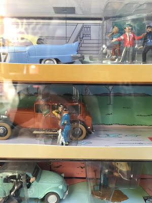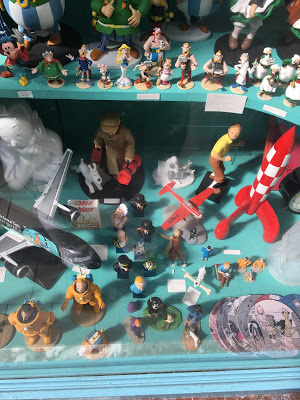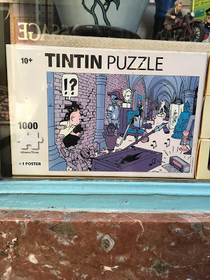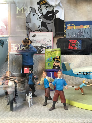 Well, for one, I'm a consumer. I can't help it. Without a doubt, it's an addiction of great importance to me, as a person, and writer. I'm sure those who read my posts have a good indication that I love records and books. But I also have a deep secretive (even to myself) love for other's childhood culture. For instance, I'm fascinated with TinTin, yet though I have to admit I'm not French or Belgium (the home of TinTin). There was a tote bag we saw through the window that seemed to me to be a perfect purchase, but alas, the store was closed. I find the independent stores in Paris a mystery due to their hours. Some are open from 1 pm to 6 pm, and I get the impression that they don't want to change their lives too much due to the success of the tourist demand. Still, I'm amazed at the beauty of a culture that's expressed in a retail shop. People tend to not to look up to the retail place as something as important as a museum. Often I think it is even more critical, because there are people who open shops that are devoted to the past, and they do so with great passion. When I go into a good shop, I feel obsession, love, sensuality, and pleasure. I feel this when I enter the Passage des Panoramas