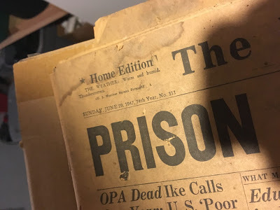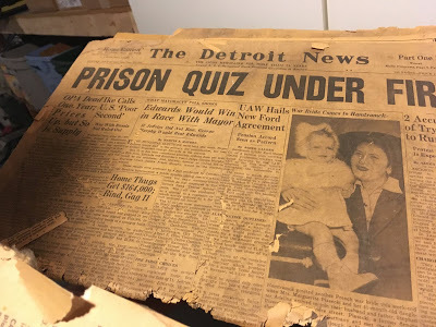 Upstairs being the lightness. Perhaps closer to the sky and its stars. As you wander down the stairs (especially the servant’s entrance), you then turn a slight left, which will lead one to the basement. It’s here that one evening I found torn and frayed copy of “The Detroit News” from June 29, 1947. It was near an old bottle of bootleg alcohol that for sure, came from the Canada side. I never removed it, because I felt it was a grave site. Perhaps not a human one, but a grave for a life spent, and I still think the spirit is in this house.