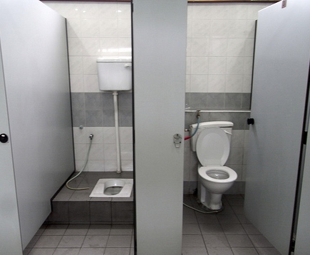 The other is the 'squat' toilet. This is the standard toilet you find in small Japanese towns or the countryside. Some old department stores as well have them. One can usually make a choice. The Western toilet is very common now. Still, I have never used this type of toilet because I could never figure how to use it. I presume one had to sit or hover over it, but at what part of the toilet do you release your obscene insides?