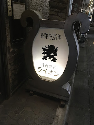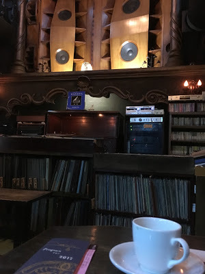 I casually looked around the small room, and there are three people there drinking coffee and listening to the music. There is an upstairs as well, that is the balcony, and the seating arrangement is the same as the bottom floor. When you see the speakers, one would think that it will be loud. The volume is somewhere in the middle. What's interesting is that the music doesn't drown out the noise outside the cafe. You can hear people laughing and walking pass the Lion Cafe, and one is aware that there is life outside the listening room. The other thing one notices is that the architecture inside and outside represents a baroque era. It is almost if you were walking down a street in the 17th century Vienna and you come upon this coffee house. It's European but with the oversight of a Japanese aesthetic.