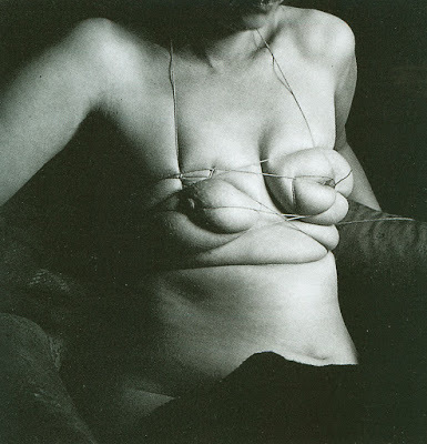 It’s not surprising that Bellmer used her as a muse - which can be a deadly position to be in for a human being. The idealized figure for inspiration can leave one feeling empty, in such a relationship. Life, or lives, is what it is that lasts in one’s lifetime. Yet, art, does have the ability to go beyond that lifeline. But often comes with a price. All reports say that their relationship was a hard one. He photographed her in various poses naked or half naked, but tied up with rope or string - where she resembles the discarded doll parts of his artwork. I now wonder if his work is more of ‘their’ work. A collaboration not only between lovers, but also as artists. I suspect she brings in something more than just inspiration. The photographs that he took of her, as a tied-up piece of sculpture, can be seen, on the surface, of one dominating over the other. But I wonder if that’s true. I suspect that she was very much part of the process in these photographs. I don’t think she’s a passive personality, at least, I don’t get that aspect of her personality through her work.