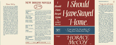 There is really no such thing as a bad Hollywood or noir novel. If it's well-written, and tells the tale, it rarely fails. For me, there are usually the exceptional and then there is the enjoyable. "I Should Have Stayed Home" is very enjoyable, but clearly to me, not exceptional. The novel was originally published in 1938, and it does capture that moment in time, with respect to how people see the movie world. Everything else in the world was shit, yet the images of the cinema world were like medicine for those who were spiritually ill or suffering from the effects of the great depression. McCoy's novel clearly expresses his time, but yet for me, it lacks poetry, which makes a noir novel great.