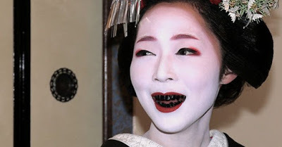 Nevertheless, I neither have dental insurance or the money to pay for such service. Therefore I decided the best thing to do is actually painted my teeth black. I’m fascinated with Japanese women who blacked out their teeth. They call it “ohaguro.” In the Meji period, aristocrats would have blackened teeth. It seems my major problem is not the teeth, but I was born in the wrong culture, class structure, and of course, time. But here, in Los Angeles, and on a Sunday, it is a dental problem.