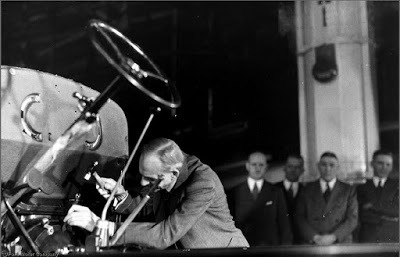 I wouldn't say he is a hero, but clearly the blood that runs in Henry Ford's veins are the same as mine. I too have a passion to run an empire. To organize a series of assembly lines to produce a product or better yet, a beautiful piece of machinery, is like kissing the devil on the lips. I never liked working for anyone, because I don't like to be told what to do. I like to do the telling. No boss over me and watching me sweats over his dreams. There is only one dream, and that dream is mine and mine alone. There is nothing more beautiful than an industry making sounds in a factory. Day-in-day-out is poetry in rhythm. The meditation of eight or so hours spent in a large room with your employees making a vision - not their's, but your vision, which is pure poetry. The kind of balladry that is popular and beautiful for everyone. Today, being Sunday, and I'm in Detroit, I like to look back when I lost control when I came face-to-face with the man who sold the world.