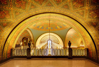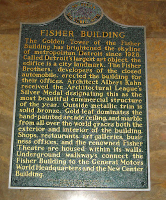Today being Sunday I just heard the news that the bid I put in for Detroit's Fisher Building (1928), as well as the near-by Albert Kahn (1930) building was the top price - and I have both buildings for 12.2 million dollars. A tad beyond my budget, yet, it is always wise to jump into the flames than run around it. First of all, the Fisher Building is located on 3011 West Grand Boulevard, not far from the Motown Museum. Like the other building with his name, Albert Kahn designed The Fisher Building. The building was built and commissioned by the Fisher Brothers, who had a company called "Fisher Body" who made the bodies for automobiles. The building mostly consists of office space with retail on the bottom two floors. There is likewise the Fisher Theater, which is an elaborate 2,089 seats - mostly focusing on Broadway related musicals. Now, the building housed the headquarters for the Detroit Public Schools - which I may just have to kick out, because of my plans for the space.