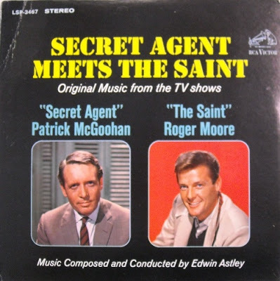 Perhaps the greatest theme song for a TV show I have ever heard is Edwin Astley's "High Wire" (the theme for "Danger Man/Secret Agent"). Even though I watched 'Secret Agent" (starring Patrick McGoohan) as a child I was only familiar with Johnny River's "Secret Agent Man" - later a hit for DEVO. It was years later, I heard "Hire Wire" I think when I watched the original BritIsh version of "Secret Agent," which is called "Danger Man" in the UK. It's confusing. I know. The British/American TV world had their separate standards, but as a connoisseur of everything wonderful, I normally go to the British for the state-of-the-art version. Today in my six mile walk, I purchased "Secret Agent Meets The Saint." Issued in 1965, this rare piece of vinyl is ground zero for my interest in British Spy TV soundtrack music. Ashley was a talented composer/arranger/conductor and his unique way of using the harpsichord as not as a baroque instrument, but something modern sounding was / is excellent. Side one is the "Secret Agent" side and the other is "The Saint." Both are superb examples of music of that period. "The Saint" has a fantastic piece of flute/voice with piano scales going up and down. It sort of reminds me of a British version of a horror Morricone soundtrack. The thing is Astley likes to swing hard - and basically the whole album is a toe-tapper.