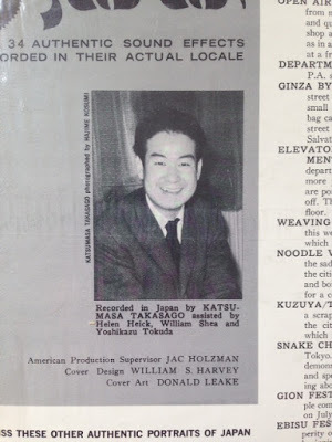 For the past 25 years, I go to Japan every year. Usually I spend up to a month to two months at a time in Tokyo. The funny thing is I have no visual memory of that country. What I do remember are the sounds of Japan. Mostly due to the fact that I own "Sounds of Japan." It is 34 authentic sound effects recorded in their actual locale. The album was put together by Katsumasa Takasago, who I know very little about.