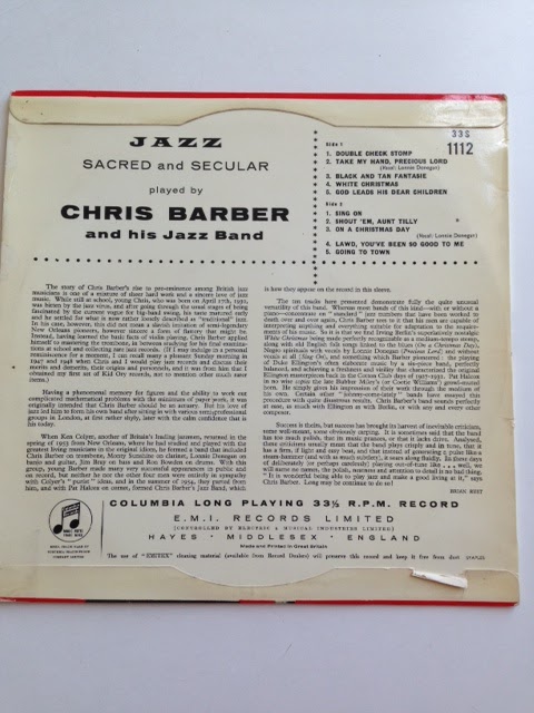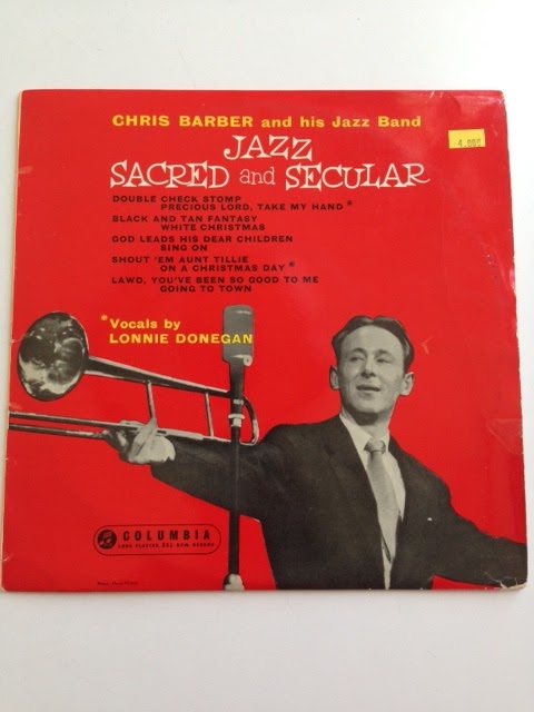 On the same trip to the record store, I found another great 10" album by Chris Barber and his jazz band. The album is called "Jazz Sacred and Secular." Barber is a British trombone player, and is one of the key players in the Soho London music scene of the 1950s. He was famous for having Lonnie Donegan in his band, who later became the figurehead that in a certain fashion, started the British Invasion in the early 1960s. Shuffle genius and architect to the do-it-yourself type of music, he made a major presence on a lot of British musicians. The beauty of this recording is that it is like listening to a well-received long distance call. Although from the UK, it reached out to New Orleans. Chris Barber actually spent time in New Orleans, and that one visit had a profound effect on his whole life. This 10" disk is a combination tribute to Duke Ellington as well as the New Orleans life. The mood is happy, but of course, it has traces of deep sadness. Music unlike food serves on different levels. If you taste food and it's too bitter or sweet, one may choose to spit it out. Music, on the other hand, is a texture that one craves for - due to its emotional responses within the grooves of the record. Barber's version of "Black and Tan Fantasie" is originally from Harlem, but here it is placed in Soho, London. Even the British spelling of Fantasy gives this recording a sense of being placed out of the storefront window, looking in, and just absorbing the goods in the store although you're outside. The sense of location changes, but nevertheless they are real places - and each place has a vision or a history. Even if it is made-up, it is still real, because what you're hearing is a place that is imagined or desired for.