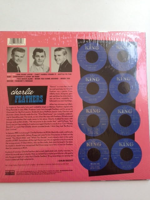 I must say it was a shock to me that I found four copies of the "Charlie Feathers" 10" album of his King recordings in the bin. Originally issued on 7" 45rpm and 78rpm format. This collection is a must if one has even the slightest interest in rockabilly music. The guitar work of Jerry Huffman is like a series of switchblade cuts on one's body. When I put the needle on this record, I hear human misery. So yes, music to me is like putting a mirror in front of my face - it has to represent the inner and deeper feelings in my soul. Food just keeps me going till the next meal, but music like Feathers, keeps me fed on a spiritual/sexual plane that can't be denied. Rockabilly music is all fucking, violent death, cheap liquor, and desires being mis-placed at the wrong place and time. Satan's favorite music. And one is dying just to taste the bottle that Satan had his diseased mouth over. After playing these four songs, I feel like spitting the blood out of my mouth.