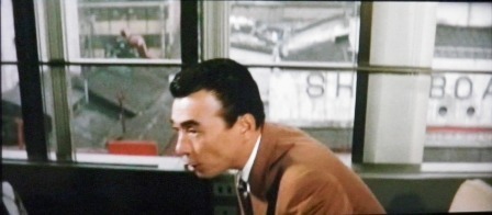 I think back at that film presentation, because now I’m totally obsessed in capturing the moment when Ueki walks down the street in Shinbashi, not having a care in the world. He just left his job, or what one thinks may have been his job. For all I know he may just come into the office to have a free cup of coffee or green tea. By the expressions of the fellow co-workers, they may have never seen him before. Therefore he takes up the character of a salaryman, as one takes an identity out of one’s closet.