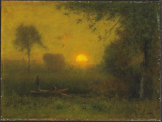My two favorite painters are George Inness (1825-1894) and Jules Breton (1827-1906), both are considered to be landscape painters, but the big difference between the two, besides one being an American and the other French, is that they use the landscape to convey different meanings. Breton was influenced by the French countryside and basically sees the beauty and idyllic vision of the pastoral existence. Inness sees the landscape as an emotional expression of various degrees. The aesthetic difference is great, but what is astonishing in how two artists can look at a tree with the skies, and be totally different in how one sees the world.