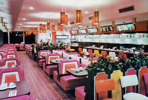 When we arrived at my doorstep, Richard looked at his phone and told me that there was an earthquake that took place, and it was 5.something or else. Again, probably because I was a tad high, I didn’t feel it and neither did he. Or the waitress as far as I know. When I got to bed, I started to think about this waitress around when I was 19 or 20 years old. She worked at Sambo’s on Ventura Bouvelard and had the night duty. Meaning she was there from 10 PM to dawn. My friend Gary and I would go there around 11, in excuse to have coffee and some sort of desert, but the fact is I think we both wanted to see this waitress. She had bleached blonde hair, and wore bright red lipstick. She was very slim, and also, had long legs. The thing about Sambo’s, is the interior of the place was all in the color pink. Even the food served had a pink glow to it. In the middle of the night, it was a weird juxtaposition of truckers stopping by for food, due that the Ventura Freeway off-ramp was close by, and these heavy set masculine men in an environment that is basically pink.