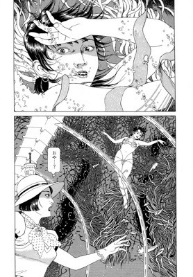 Reading this I am not disappointed with what he has done with "Panorama Island." Usually with a visual book like this or even "Foam of the Daze" one can be disappointed by the artist who is re-interpretating the original source, because it fails the reader's vision of that work. But I think Maruo not only respects the work, but I suspect it is a very important text for him and his work. He follows the Rampo vision, and added his touches, but in many ways Maruo (with respect to his work) is very much the son of Rampo. They share the same sensuality mixed with a taste for violence and the bizarre. Maruo's heart is very much with the early 20th Century and his work with Rampo's book is the perfect marriage or relationship.