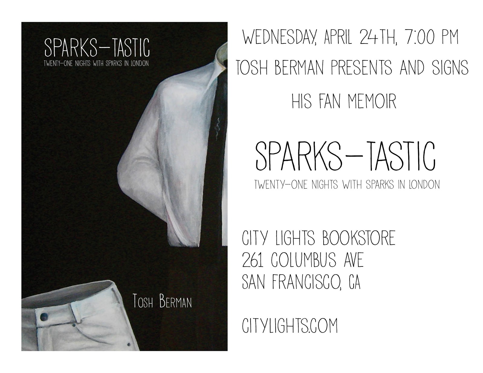 On May 14, "Sparks-Tastic" will be officially released and one can get it on their favorite online shops as well as Independent bookstores through out the U.S.A and the U.K. Also I imagine various music stores will be carrying this title as well. And remember, if you can shop at your favorite neighborhood bookstore or music shop please do so. They can more likely special order the book (just in case they don't have it in stock) and send it off to you.