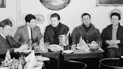 The gangs all here: Timothy Behrens, Lucian Freud, Francis Bacon, Frank Auerbach, Michael Andrews. © The John Deakin Archive