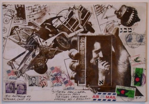 My father Wallace Berman was friends with the poet Piero Heliczer. Funny enough I was researching old Little Caesar journals (published by Dennis Cooper) this morning for a project I'm working on for the Hammer Museum. I came upon an issue devoted to Piero's work in that journal. Nevertheless, by accident (do they really happen?) I found this post card art by Wallace sent to Piero. My dad eventually did a book cover for Piero as well. So, Wallace Berman art sent to Piero Heliczer.