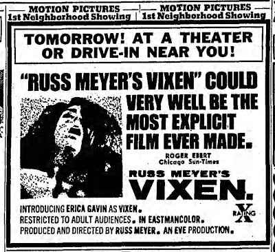It was sex/filmmaker Russ Meyer's birthday a few days ago, or maybe yesterday? What a remarkable film artist. I remember going to see a film retrospective on Hollywood Blvd and being transported to an extraordinary world. Only two filmmakers affected me in that sense. The other director was Fassbinder. Both are obsessed geniuses who transform their landscape into a private space that becomes public. For me, there is nothing sexy about Meyer's work. It's about sex without the sexy feeling, which is very odd. Also, since he's the cinematographer and director/writer, one enters a place with its own sense of rhythm and rhyme. Meyer is a unique artist. Exploitation is his soul, and the crisp black and white images of his early films are a wonder in itself. But also in his color films how blue the sky is. Nature, tits, ass, and Russ Meyer.
