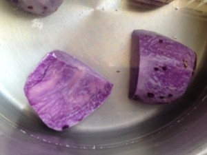 Me: Will you throw some salt into the pot? Two big pinches? I wonder if they will lose the purple or if they will taste the same.