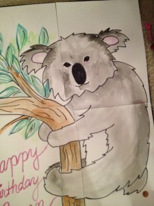 M is totally obsessed with Koalas. It could be worse. So, there was a koala-themed party. I decided to make koala cupcakes. Here is what I used… Store-bought mix (on sale), store-bought white frosting, a tube of black glittery frosting, left-over pink sprinkles, mini Oreo cookies, a fork, a knife. (I wanted to buy black jelly beans for the nose, but didn’t want to spend $8 on a bag of assorted beans to get 12 black ones… ) I mixed a little black frosting with white and spread it around. Then broke open the Oreos, tossed the half without frosting, Stuck these into the frosting and into part of the cake. Used a fork to schmear on a little white “fur” in the ears, and added a touch of pink sprinkles. Then used the black tube for the facial features. I should have put them in the fridge right away as some of the noses “ran” into the mouth… (I was inspired by a cupcake of a cat that I saw in a magazine that used about 15 different kinds of candy. That’s what makes me a little crazy about many craft or decorating projects, they can pull it off because they have hundreds of dollars of inventory at their disposal!) I’d guess my final bill was under $15. (Including the crazy eyes I tossed. See next photo…)