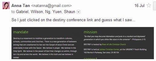 It's been a crazy weekend at the Destiny Conference. I could put it all down to coincidence or serendipity, really but let's just say it as it is. God's been pulling strings. ;)