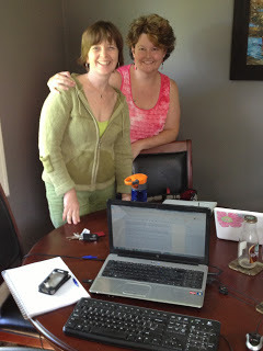 Vicki (@Morrisonminutes) and I on a break.A few weeks ago, my writing buddy and I were discussing the need to write without interruption, and came up with this: we needed a retreat. Sadly, neither of us have the vacation time (or the extra funds) for an all-out retreat to the Caribbean, so we planned a one day writing bonanza. A mini-retreat. A get away with our laptops and a quiet space (her office, which is closed on Saturdays) with some coffees and snacks and freedom to think.