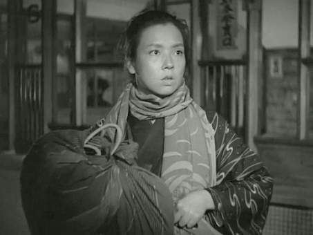 This Daiei production was supposedly based on Yasunari Kawabata’s1930 novel of the same name, a fine English translation of which was publishedby the University of California Press in 2005 under the title The Scarlet Gang of Asakusa. However,the only thing this film has in common with the novel is that it concerns thecriminal underworld of Asakusa, a pleasure district of Tokyo which was twicedestroyed – first by the Great Kanto Earthquake of 1923, later by Americanbombs. Kawabata’s novel is a largely plotless and uncharacteristicallymodernist work consisting of a series of vignettes about the petty thieves andprostitutes who haunted the back alleys of Asakusa and kept an eye for out foreach other. Not only is there no gang boss like Nakane, but none of thecharacters from the book appear in the film and the setting has been updated tothe post-war era. While the nature of Kawabata’s novel would have made itdifficult to adapt for the screen, it’s disappointing that screenwriterMasashige Narusawa failed to come up with a better story than the cornymelodrama which unfolds here, especially considering the fact that he was responsiblefor many fine scripts, including a number for Mizoguchi.