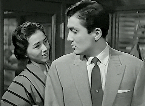 Leading lady MiekoTakamine will be familiar to many readers, but who, you may well wonder, was herco-star, Toyohiko Fujikawa? Well, he seems to havebeen born in 1924 and has just two other credits, both in Daiei movies from1950. According to @Shimo_x2on x.com, he ‘was not originally an actor but a young president of aconstruction company. It seems he also invested in this film, making hisappearance in the movie something of a hobby.’ In any case, he gives a slightlystolid but perfectly acceptable performance and certainly looks the part of aleading man.