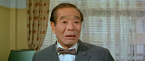 For me, the main appeal was that it provided a rare chance to seeanother film by Hiroshi Edagawa, whose RosesBloom on The Rose Bush (1959) I liked so much. However, this one is less interestingas it’s basically a piece of fluff, albeit a well-made one which is notunentertaining. It’s an ensemble piece with no real star at the centre,although Jiro Tamiya and Junko Kano were both beginning to get popular at thetime and Sachiko Hidari also appears prominently, although in a role that haslittle bearing on the story, while Kazuko Matsuo pops up singing the title songin a nightclub (to which you can listen on YouTube here). Even Bokuzen Hidarimakes an appearance as one of the company presidents - which may well be themost untypical role he ever played. Anyway, for the most part, it's a pleasant enoughtime-passer, though the gay stereotyping of Kanji Matsumoto’s character isregrettable.