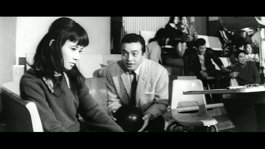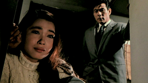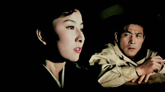 The music by Sei Ikenoflits back and forth between irritatingly repetitive bossa nova lounge muzakand some more effective brooding strings for the darker moments. Thecinematography by Masamichi Sato, on the other hand, is consistently effectivethroughout and makes you glad that the film was not shot in colour. Sweet Secret was the penultimate film ofKozaburo Yoshimura, who lived until the year 2000, but whose ill health madeworking difficult for him in his later years. It’s clear that in this case hewas working on a smaller budget than he had enjoyed in the past, and there’salso a sense that he was struggling to keep up with the times and attempting tomake something more akin to a Yasuzo Masumura film (I suspect that Yoshimuramight have preferred to make this a period drama and the idea of updating thestory from the 1920s to contemporary Japan was likely a condition imposed byShochiku, although it may have been Shindo's idea as he had previously adapted another Shusei Tokuda story as Stolen Pleasure for Daiei and given it a modern setting). In any case, it’s a decent effort of some interest, although notamong the director’s strongest pictures. Perhaps the most intriguing aspect ofthe film is its ambiguity – it could equally be interpreted as the story of ayoung woman who uses men to attain her ambitions or as being about menexploiting a young woman’s ambitions in order to gain sexual favours.