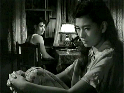 Meanwhile, Akiko’s bestfriend, Natsuko (Wakao), accepts an invitation from Toshio (Yosuke Irie) to aparty but is forced to stay home by her mother, who wants her to study maths athome with the new tutor she’s hired, a medical student named Masato (JunNegami). Feeling guilty at standing up Toshio, Akiko pays him a visit the nextday to apologise. However, when she failed to appear, he had ended up beingseduced by an older woman (Murasaki Fujima) and losing his virginity. Natsuko has no knowledge ofthis, so she’s shocked to find that the sweet, gentle boy she had known haschanged overnight and now thinks that he’s Dan Duryea. When Toshio tries toforce himself on her, she gives him a few slaps and a good telling off, anddecides not to see him again. Despite her annoyance, Natsuko takes the incidentin her stride, forgets about him and moves on.